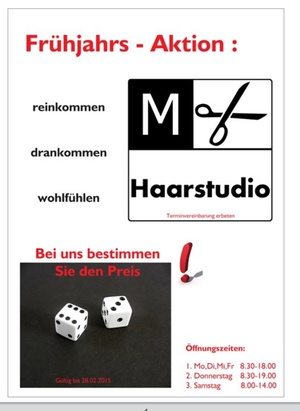 Teilnahme gegen Vorlage eines Flyers oder eines Fotos (Handy) mit obigem Aktions-Foto.